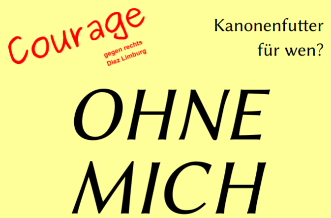 Also fragen wir uns im November-Flyer 2025 mit dem Titel „OHNE MICH!“: Warum und mit welchen Mitteln wurden und werden junge Leute für das Kriegshandwerk gewonnen?