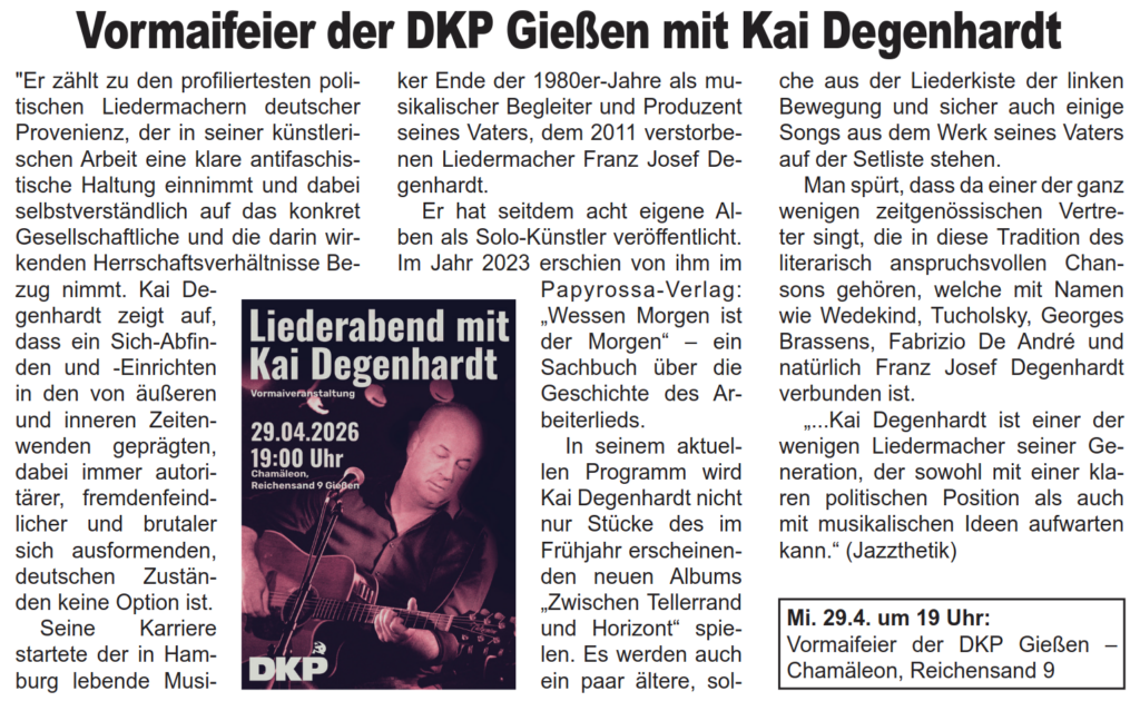 • 29.04.2026 Kai Degenhardt singt in Gießen 29.04.2026 Kai Degenhardt singt in Gießen