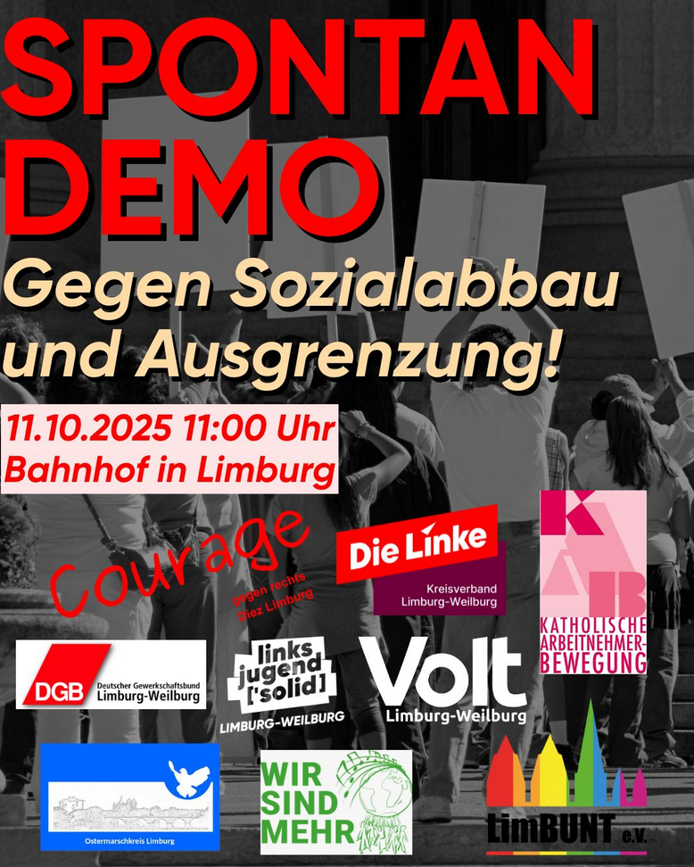 Von der Idee am Freitag nachmittag im Atzeln-schackern-gegen-rechts-Kreis zur Aktion am Samstag morgen in der Innenstadt: Dreißig meist junge Menschen mit oder ohne Herkunft aus Volt Solid, Linken, dazu die DGB-Kreisvorsitzende und Courage-Leute, protestierten spontan gegen die neuen Koalitionsbeschlüsse zur Drangsalierung von Leistungsempfängern und Asylsuchenden.